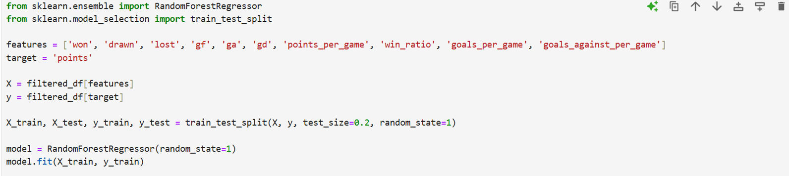 2) Predict the 2024/25 Premier League season standings using a Random Forest model trained on previous seasons