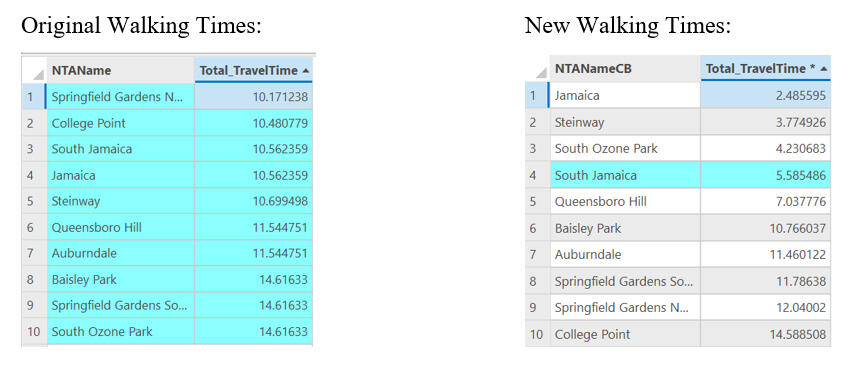 4) Adding hypothetical Citibike stations in high-traffic areas within low-income neighbourhoods significantly cut down walking time to the nearest train stations.